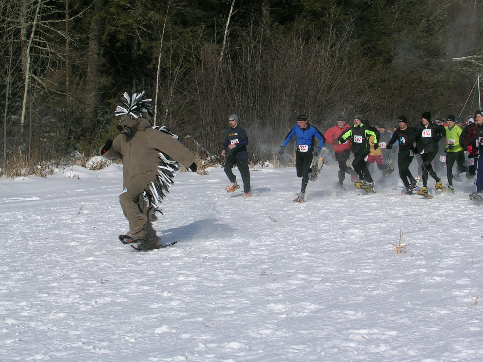 Perkinstown Porcupine leading the 3 mile snowshoe race.